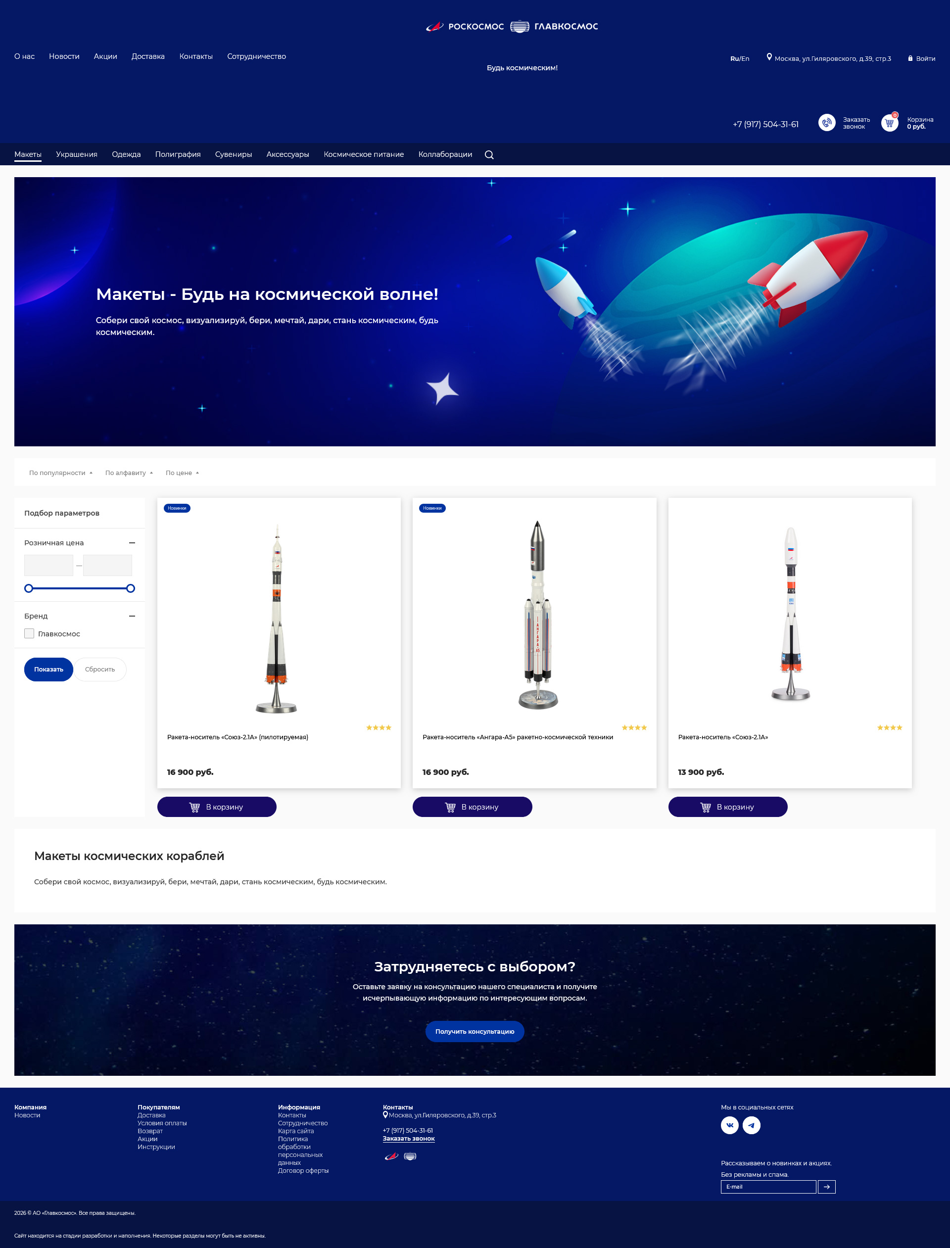 Восстановление работоспособности и техподдержка интернет-магазина товарных знаков Роскосмоса, сувенирной и брендированной продукции на космическую тематику (Битрикс 24)